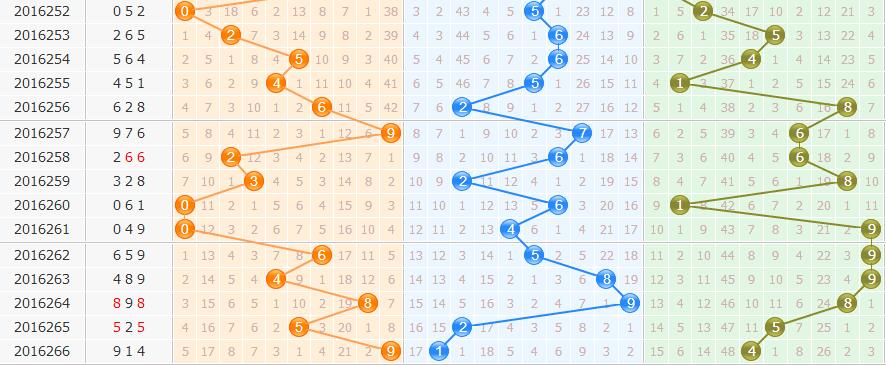 冷号:2016266期冷码仅开出1枚,具体落于十位,结合30期的冷码出号数据分析,267期冷号的上升势头很强。