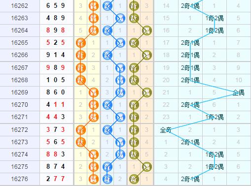 回顾:上期开出277,组三形态,奇偶比2:1,大小比2:1,和值16,211路组合,跨度5