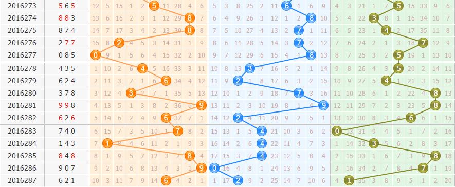十位分析:十位第2016287期的奖号为2,依照近期走势,本期十位号码我们选择遗漏时间较长的数字盯防。