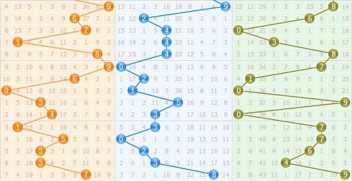 和值分析:上期和值为24点,分析和值走势,上期和值大幅上升,本期看好和值点下滑,取范围13-19点。