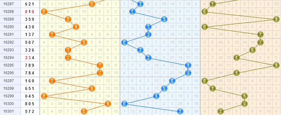 3、和值分析:上期和值14点,和值走势上升,近期和值走势波动幅度不大,本期关注二区和值出号,重点和值关注12防14点。