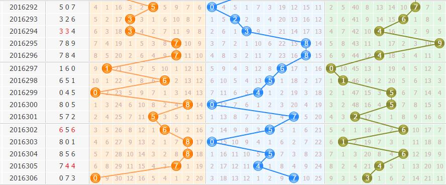 除3余数分析:16306期开奖结果是073,除三余数为010路,根据近二十期数据来看,下一期优先考虑1路号码的大幅增温。