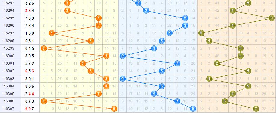 重复号:997的开出使得号码7继续走热,冷码9解冻。本期关注重复号码个数为1个,关注号码9开出。