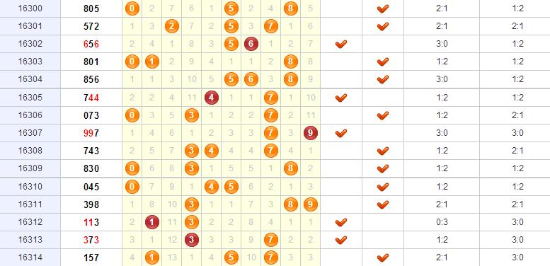除3余数分析:314期开出121路组合,根据出号趋势,16315期要防范0路数值快速回补。