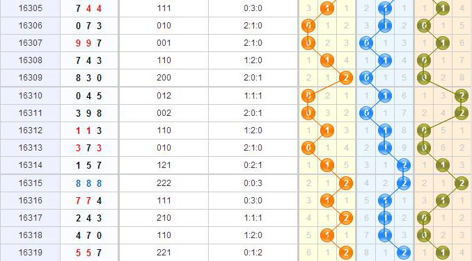 结合组选012路分布图,上期开出221路,本期关注断路,看好201、210、102防300路。