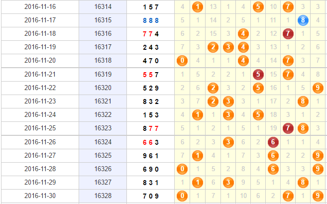 16329期胆码推荐:257 开出1-3个,金胆:2 银胆:7