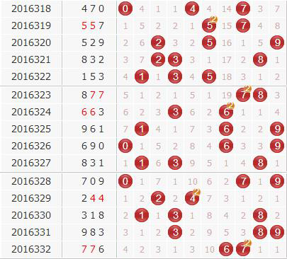 本期号码上数十期开奖号码为877,百位8,对应数3、补数2;十位7,对应数2、补数3;个位7,对应数2、补数3。