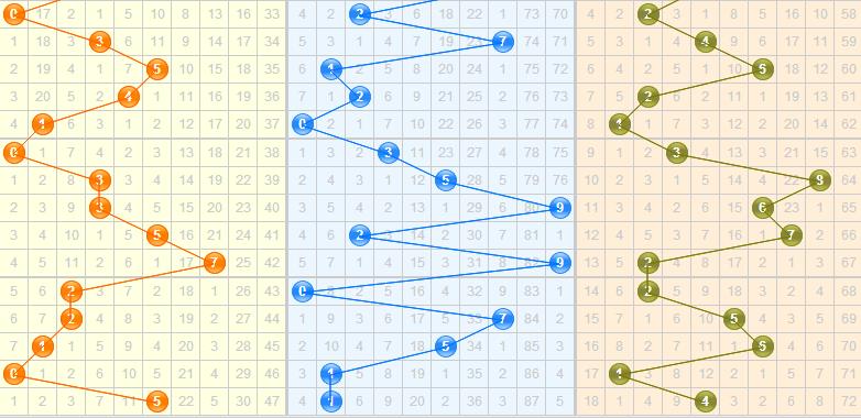 跨度分析:上期跨度5,属于大跨度开出,分析近期各区出号走势,本期跨度值为看好小跨度值,重点关注3跨防7跨。