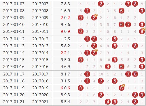 胆码分析:上期开奖号854,下期关注数字4,防数字2、9。