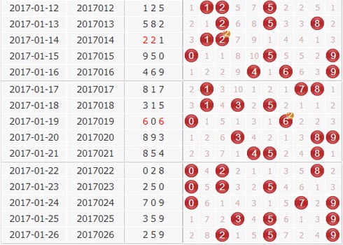 胆码分析:上期开奖号259,下期关注数字6,防数字0、7。