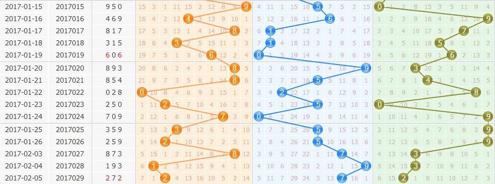 和值分析:上期和值11点,和值走势下降,近期和值走势波动幅度不大,本期关注三区和值出号,重点和值关注19防17点。