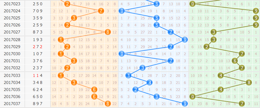 17038期胆码推荐:278 开出1-3个,金胆:7 银胆:8