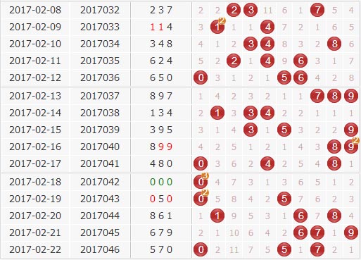 个位分析:上期的开奖号为0,结合近期走势,本期关注12路,推荐胆码2,重点关注:245