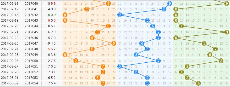 和值分析:上期和值16点,和值走势上升,近期和值走势波动幅度不大,本期关注二区和值出号,重点和值关注16防12点。