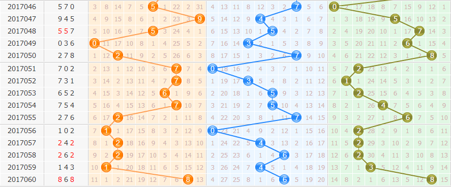 17061期胆码推荐:278 开出1-3个,金胆:7 银胆:8