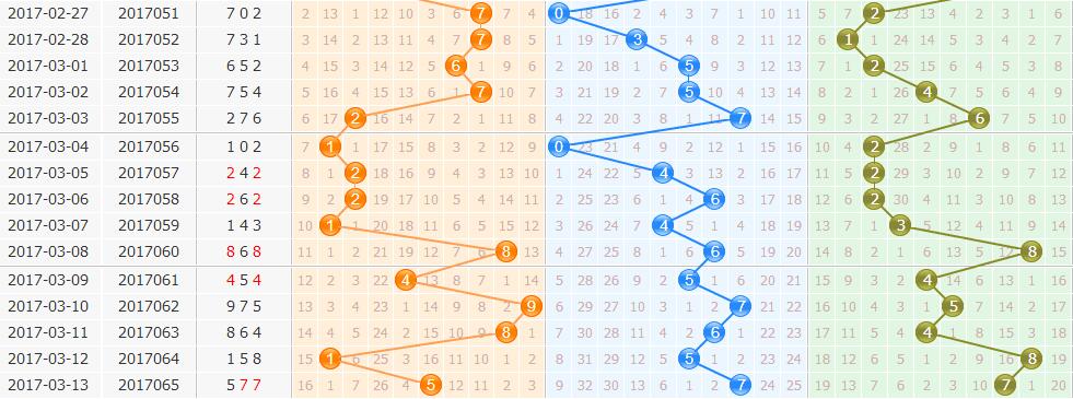 和值分析:上期和值19点,和值走势下降,近期和值走势波动幅度不大,本期关注二区和值出号,重点和值关注15防19点。