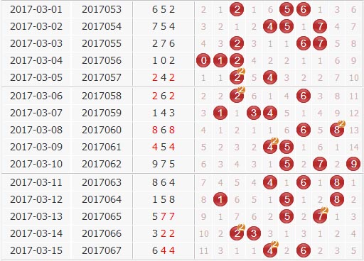 胆码分析:上期开奖号644,下期关注数字5,防数字2、9。