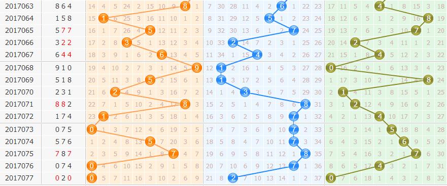 和值振幅呈7-5-10-7-4-4-8-12-4-11-20的走势,和值振幅较大,振幅波动幅度上升开出,本期和值有望大范围调整,二区和值重点留意开出;下降开出,本期和值有望大范围调整,二区和值重点留意开出;