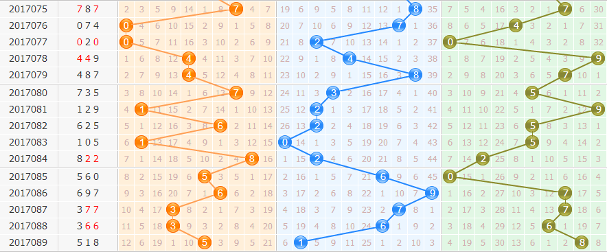 17090期胆码推荐:05 开出1-3个,金胆:0 银胆:5