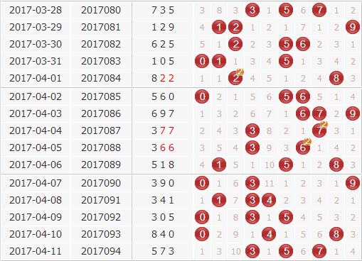 1、 组选分析:在组选分布图上 ,小号0-2上期断开,本期关注开出0-1枚;中部号码3-6上期开出2枚,本期关注开出1-2枚;大号7-9上期开出1枚,本期关注1-2枚;结合组选复隔中分布图,上期开出组选隔隔中形态,本期关注复隔码最少开出1-2枚。本期出号条件:复隔码034578=1-2,中码1269=1-2。