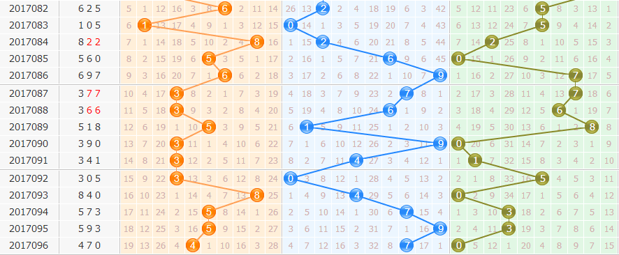 本期号码上数十期开奖号码为377,百位3,对应数8、补数7;十位7,对应数2、补数3;个位7,对应数2、补数3。