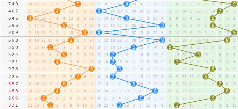 和值分析:上期和值为7点,根据和值走势,关注和值范围8-19点。