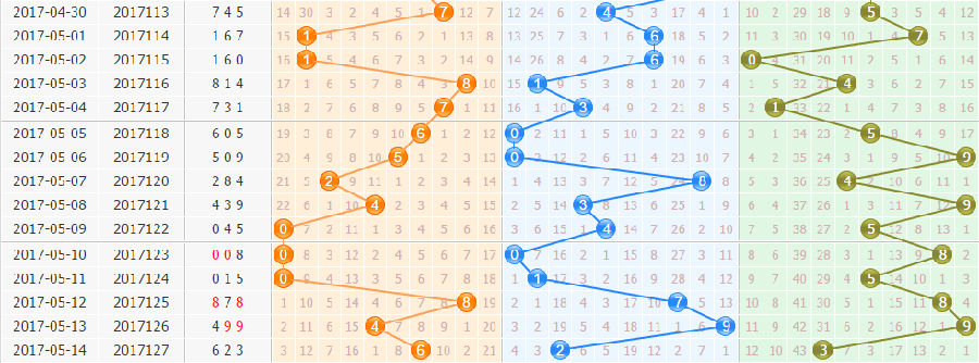 十位:近期十位上的跨度走势(3-0-8-5-1-4-1-6-2-7),根据跨度公式推算,本期留意跨幅小跨隔期开出,防大跨连续出号,推荐小跨2、3防大跨5。推荐号码4、5、7