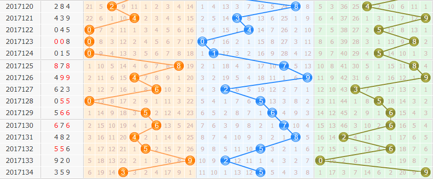 和值走势:近十期和值6-23-22-11-17-19-14-16-11-17,一区和值开1期,二区和值开7期,三区开出2期,下期留意二区和值防三区和值,重点关注和值11 21。