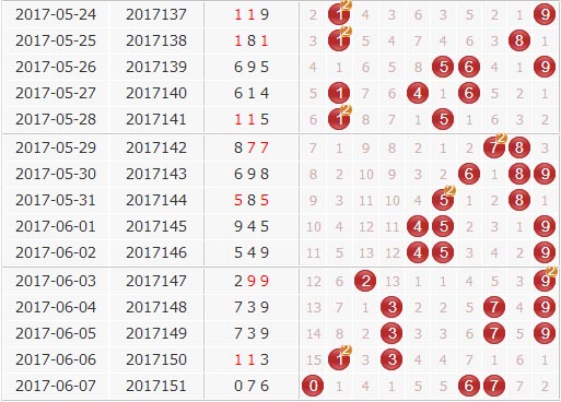 百位分析:上期的开奖号为0,结合近期走势,本期关注01路,推荐胆码4,重点关注:347