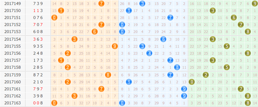 17164期胆码推荐:05 开出1-3个,金胆:5 银胆:0