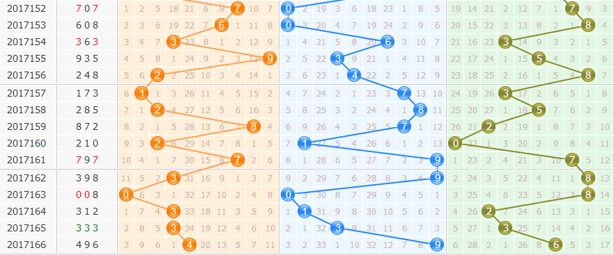 本期号码上数十期开奖号码为173,百位1,对应数6、补数9;十位7,对应数2、补数3;个位3,对应数8、补数7。