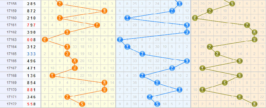 17173期胆码推荐:05 开出1-3个,金胆:0 银胆:5
