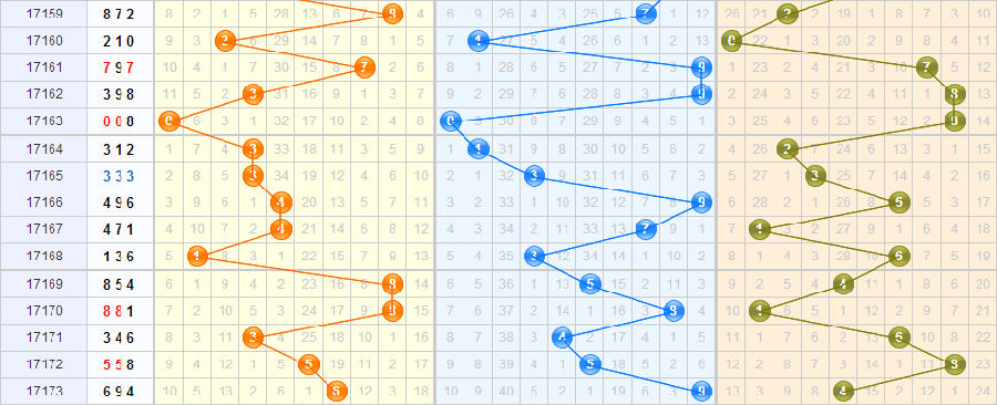 [百位]:上期的开奖号为大偶数6,分析近期走势,本期百位注意小偶数出号。