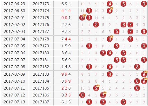 福彩3D第17187期开奖结果:613;奇偶形态:偶奇奇;大小形态:大小小;和值:10;跨度:5