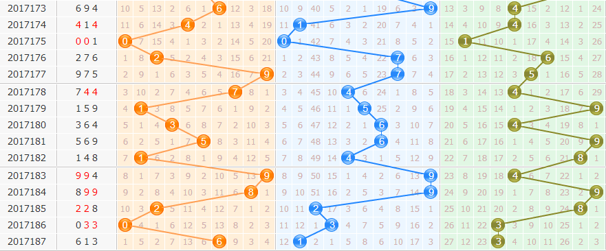17188期胆码推荐:469 开出1-3个,金胆:9 银胆:6