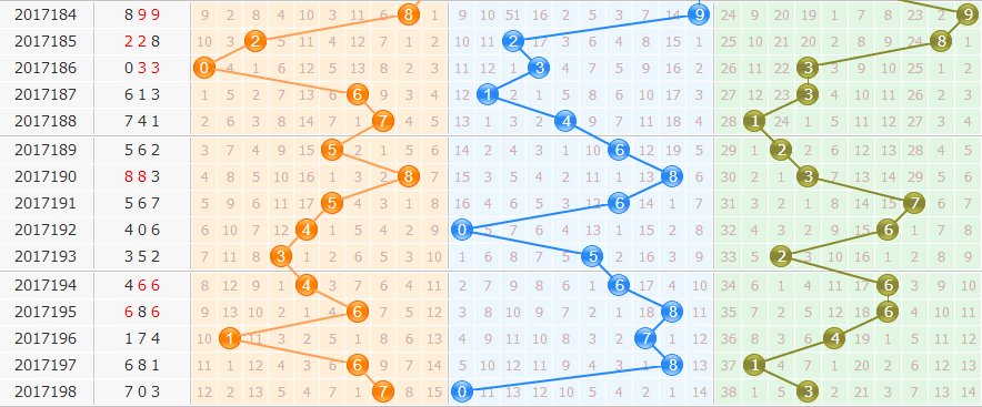冷态号码:198期冷态号码开出两枚,具体是十位0及个位3,最近三期冷温码几乎相互依存,下期冷号有望降温。