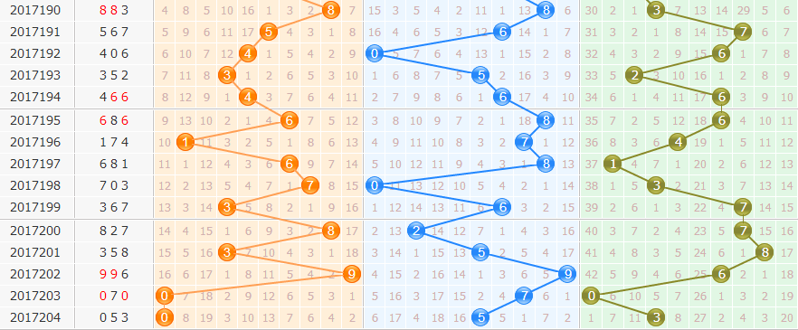 和值分析:上期和值08点,和值走势上升,近期和值走势波动较大,本期重点和值关注07防11点。