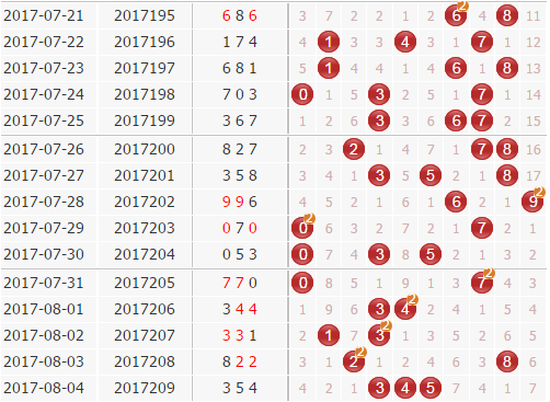 热温冷:下期看好热号开出0,温号看好开出8,冷号可防1。