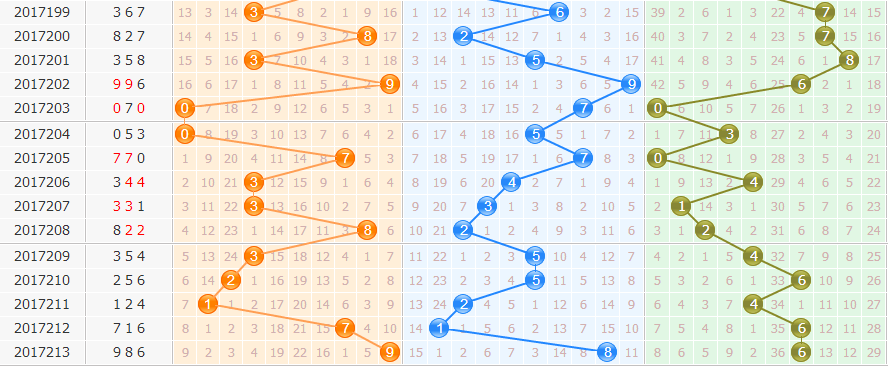 和值分析:上期和值23点,和值走势上升,近期和值走势波动较大,本期重点和值关注18防16点。