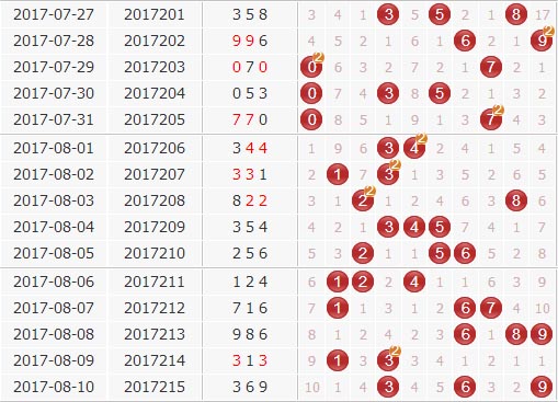 福彩3D第17215期开奖结果:369;奇偶形态:奇偶奇;大小形态:小大大;和值:18;跨度:6