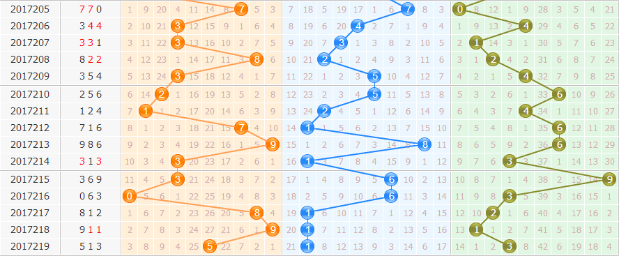 17220期胆码推荐:05 开出1-3个,金胆:0 银胆:5
