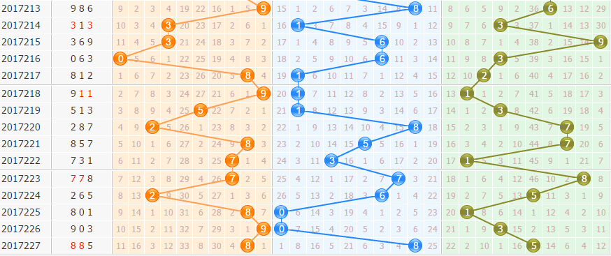 【012路分析】:上期开出222路组合。本期严防2路码热出,留意220路形态开出。