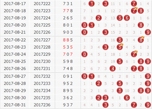 胆码分析:上期开奖号937,下期关注数字6,防数字8 7。