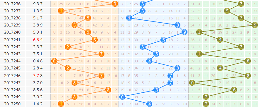 跨度分析:上期跨度3,属于小跨度开出,分析近期各区出号走势,本期跨度值看好小跨度值,重点关注3跨防4跨。