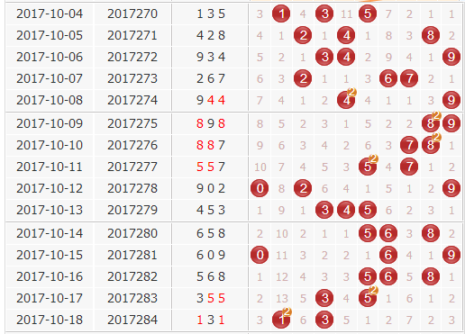 17285期胆码推荐:149 开出1-3个,金胆:9 银胆:4