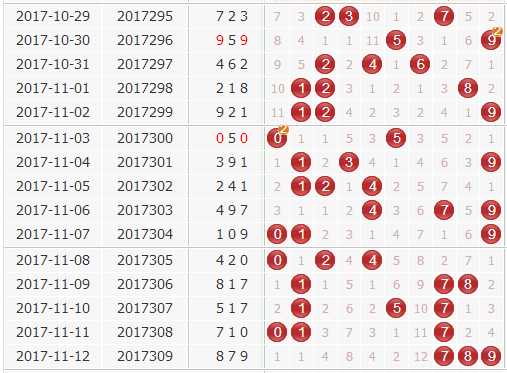 组选分析:在组选分布图上,小号0-2上期断开,本期关注0-1枚;中部号码3-6上期断开,本期看好开出1-2枚;大号7-9上期开出3枚,本期防开出1-2枚;结合组选复隔中分布图,上期开出组选复中中形态,本期关注复隔码最少开出1-2枚。本期出号条件:复隔码01789=1-2枚,中码23456=1-2枚。