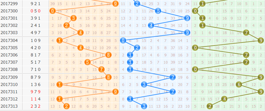和值分析:上期和值7点,和值走势上升,近期和值走势波动较大,本期重点和值关注15防17点。