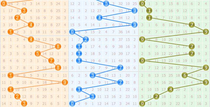 跨度分析:上期跨度3,属于小跨度开出,分析近期各区出号走势,本期跨度值看好小跨度值,重点关注3跨防6跨。