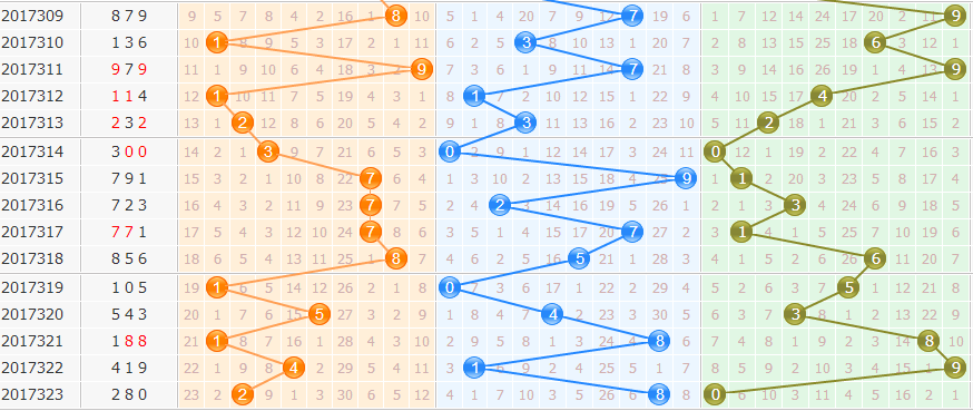 上期开出280,组六形态,奇偶比0:3,大小比1:2,和值10,220路组合,跨度8。