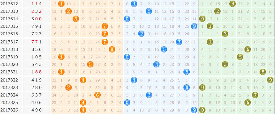 和值走势:近十期和值分布为15-19-6-12-17-14-10-16-10-13,一区和值开出1期,二区开出8期,三区开出1期。下期重点二区和值出号,重点关注和值14点。